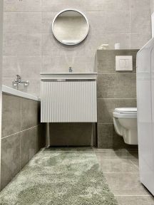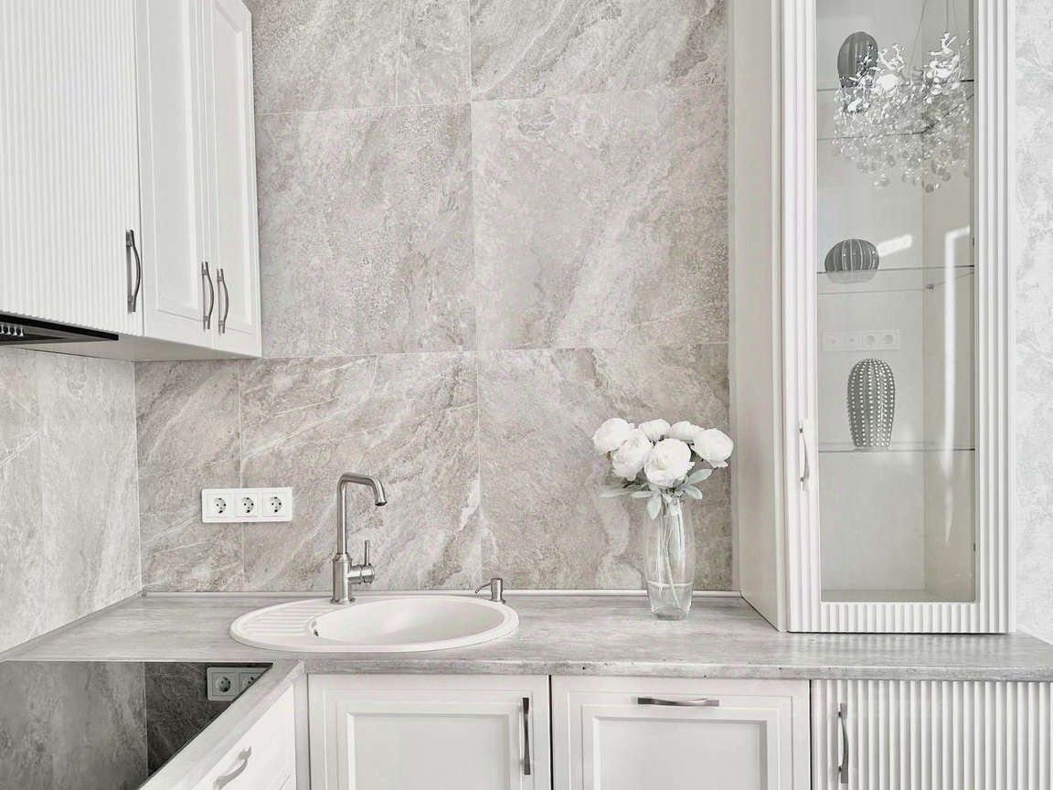 В квартире дизайнерский ремонт, выполненный из премиальных материалов в нейтральных оттенках.