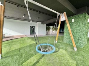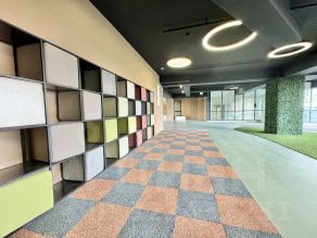 - PLAY-ZONE на 3 этаже с уличной температурой и возможностью гулять в любую погоду. Игровые площадки, спортивные тренажеры, скалодром, зоны для занятия йогой, гамаки, кинозал, питьевые фонтаны