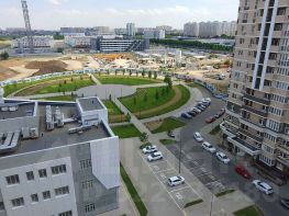 С окон квартиры открывается прекрасный вид на зеленый бульвар с фонтаном и Храмом.