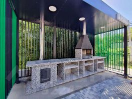 На территории комплекса предусмотрено несколько уединенных зон для отдыха с комфортными лавочками и качелями с теневыми навесами, а также зона барбекю в окружении благоустроенного ландшафтного дизайна
