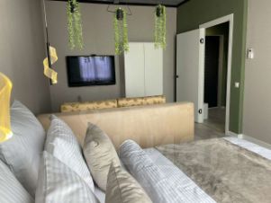 В квартире сделан стильный дизайнерский ремонт , совмещенный санузел. Квартира полностью укомплектована мебелью и техникой ! Все остается !