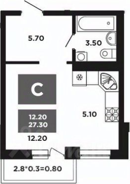 • Студия расположена на 9 этаже монолитно-кирпичного дома. Площадь студии с лоджией 31 кв.м.