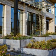 Дом выполнен в сдержанном деловом стиле. Фасад отделан натуральным камнем травертином. Изысканные интерьеры холлов подчеркивают бизнес среду. В доме уникальные квартиры и множество вариантов планировочных решений. В каждой квартире сенсорная панель домофона с видеозвонком. Выполнена отделка входных групп в премиальном дизайне.