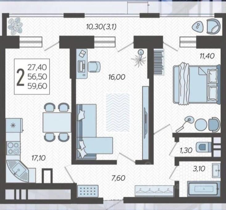 Квартира на пятом этаже 13 - ти этажного дома в районе ЭНКИ. Кухня - 18 м 2, жилая комната -15 м 2 . 17 м2