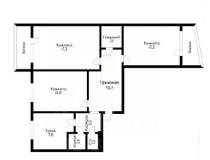 Планировка с изолированными комнатами: жилая комната - 12,7 м2, жилая комната - 12,9 м2, жилая комната - 17,2 м2, кухня - 7,8 м2 во всех комнатах на полу сохранен дубовый паркет в отличном состоянии, раздельный санузел, большая кладовая гардеробная, балкон и вместительная лоджия застеклённые, просторная прихожая, где можно устроить огромную зону хранения.