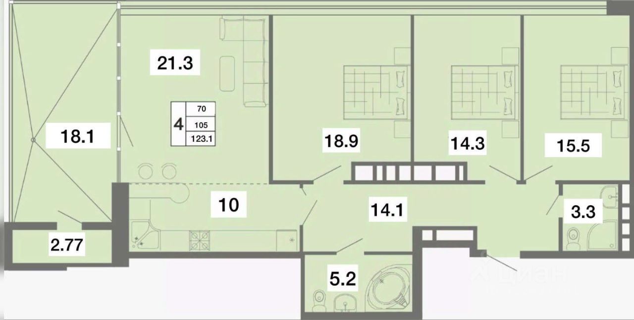 Удобная, просторная планировка: 3 отдельные спальни, кухня-гостиная 31 метр, 2 санузла, кладовая, терраса 18 кв.м. Потолки 3,5 м. Из окон открывается красивый панорамный вид на город.