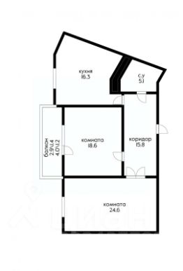 - общая площадь 85 кв.м, площадь по выписке ЕГРН 80,7 кв.м. кухня 16,3 кв.м, жилая 24,6+18,6 кв.м.