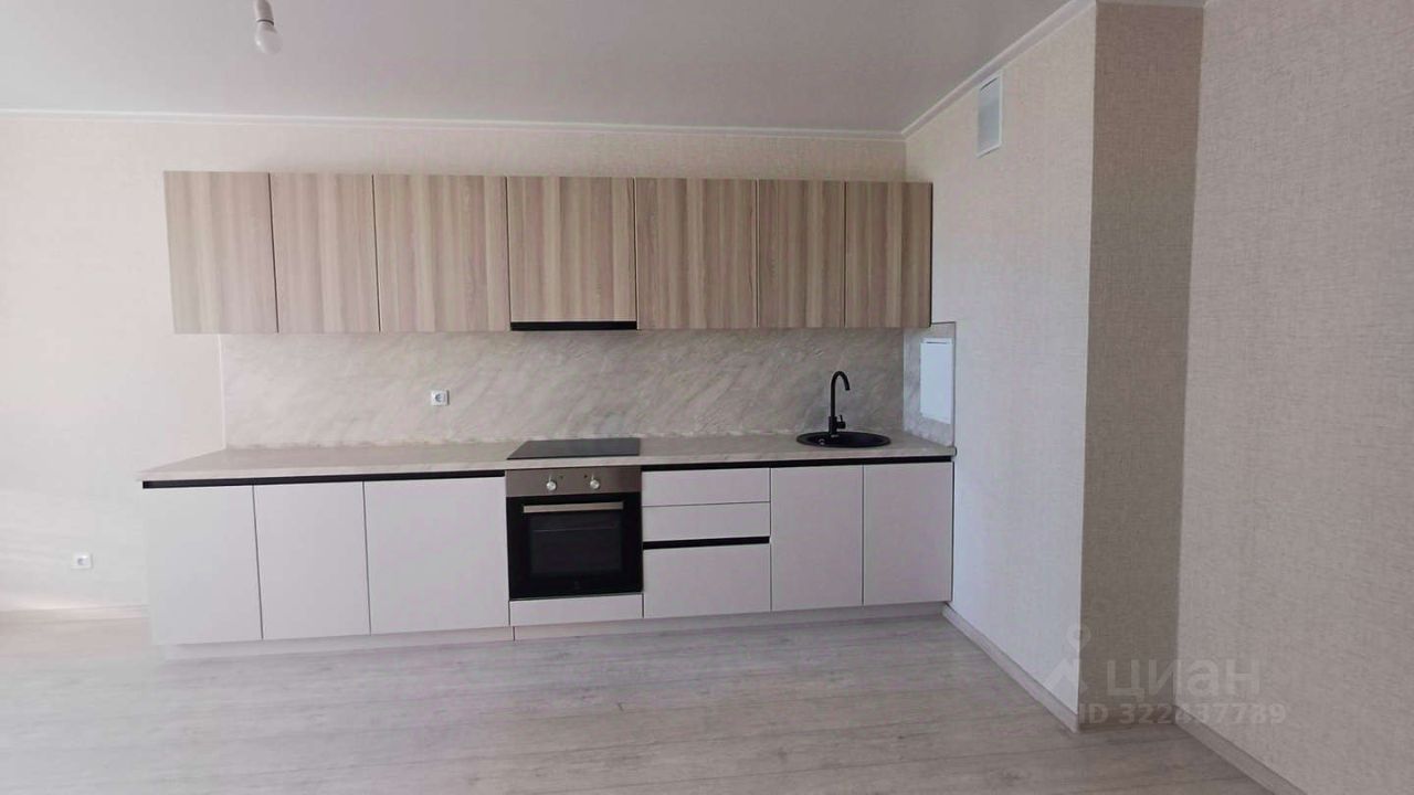 • установлен кухонный гарнитур и техника встроенная варочная панель, духовой шкаф, вытяжка