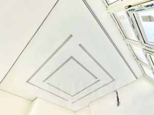 Матовый натяжной потолок с парящим эффектом и подцветкой управление с пульта.