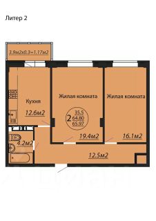 - общая площадь в выписке из ЕГРН 65,97 кв.м.