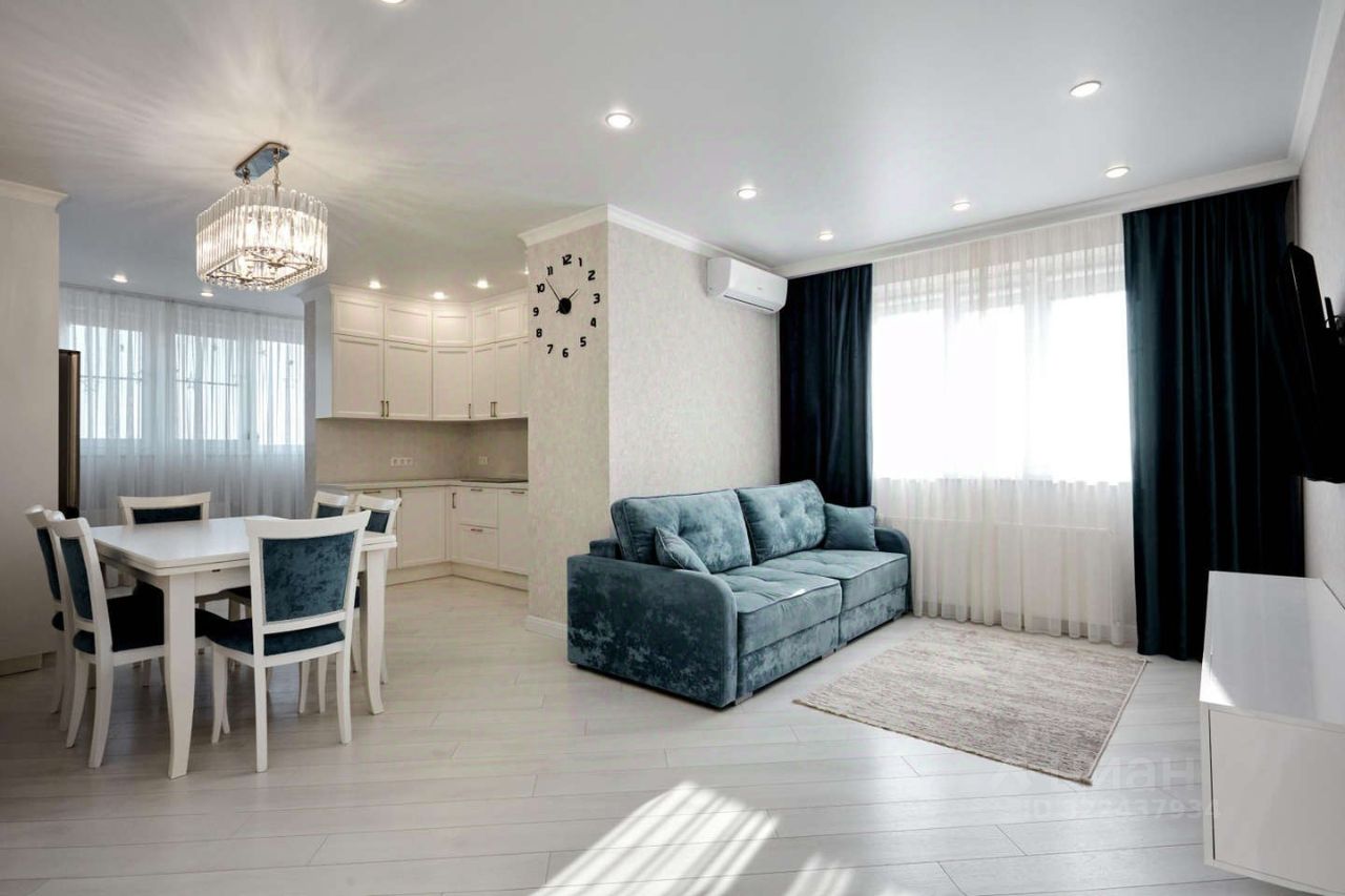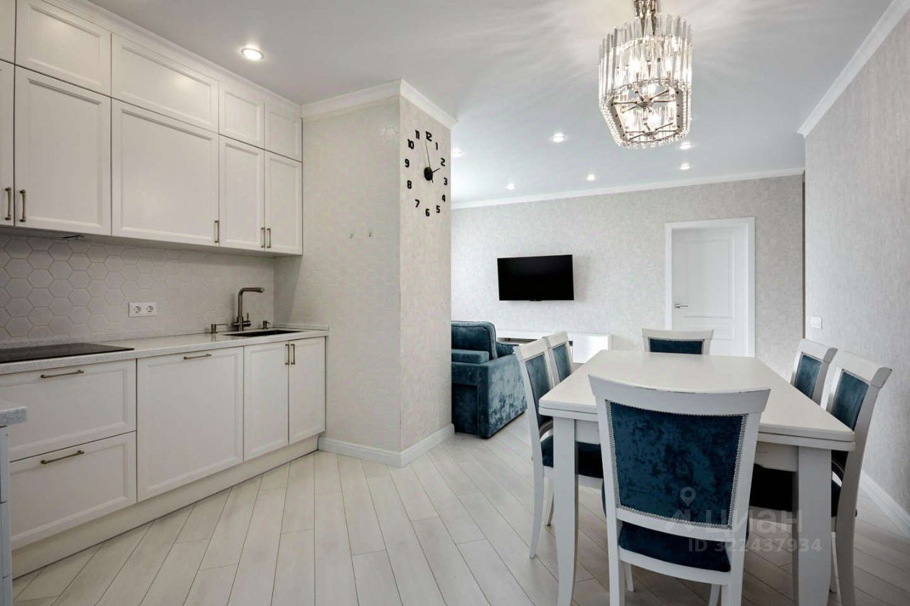 Кухня-столовая 29 кв.м., две спальных, две огромных лоджии , застеклены и утеплены. Кухня и корпусная мебель делалась на заказ с учетом особенностей планировки этой квартиры. Высокий , видовой этаж с окнами на три стороны света, т.е. закаты, рассветы и ближнее предгорье- все это Вы будете видеть и радоваться виду каждый день. Окна были заменены , проводка переделала, ПЧО от застройщика убрано и нанесена штукатурка под маяки.
