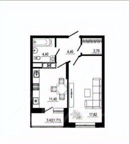 Удобная планировка, гостиная -18 кв м, кухня 12 кв.м, имеется гардеробная комната.