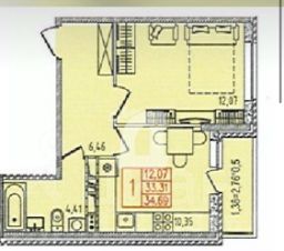 • Площадь квартиры 36 квм. Функциональная планировка : кухня правильной формы с выходом на лоджию, гостиная 12 кв.м с большим витражным окном, санузел 4, 4 кв.м, просторная прихожая 7 кв.м
