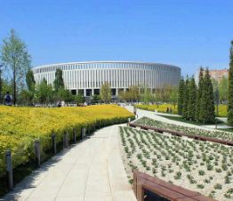 Обширная зеленая зона. Во дворе детские и спортивные площадки, теннисные корты, зеленые зоны.