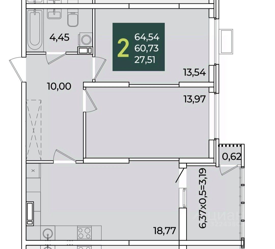 2-комнатная квартира в новом жилом комплексе. Предчистовая отделка, большая лоджия с панорамным остеклением. Установлены все счетчики.