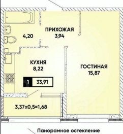 - общая площадь 33,7 кв.м. с учетом лоджии