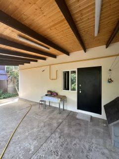 Большим плюсом этого дома является его грамотное расположение на участке. Есть еще достаточно места для зоны барбекю, для бассейна, для сада или цветника. Большой качественный навес позволяет сделать большую зону отдыха.