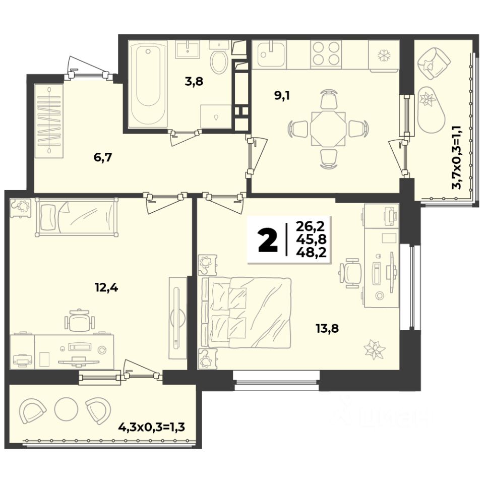 Продаётся 2-комнатная квартира в строящемся доме (Литер 2.2), срок сдачи: IV-кв. 2026, общей площадью 53.6 кв.м., на 8 этаже. Новый жилой комплекс "Лето" от застройщика "ГК Дарстрой" расположен по адресу город Краснодар, улица Западный Обход.