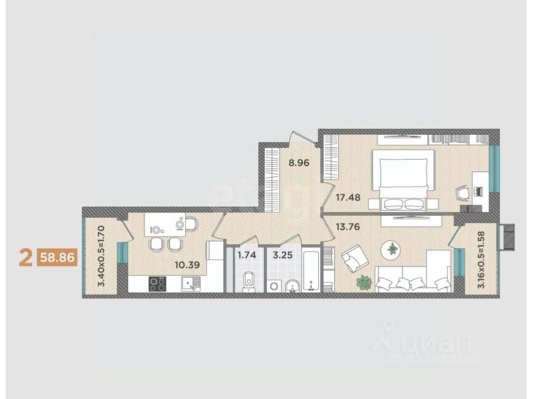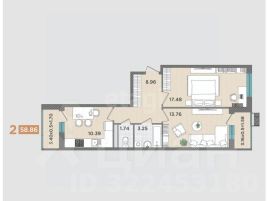 Великолепная 2х км кв 58,86м2, которая станет идеальным местом для вашего комфортного проживания или отдыха!