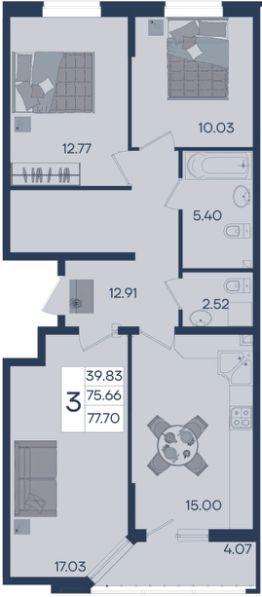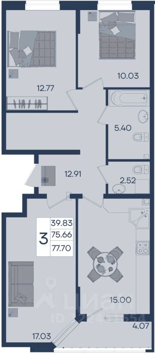3 комнатная квартира с ремонтом 77.7 м², на 2 этаже в жилом комплексе "Дом 101".
