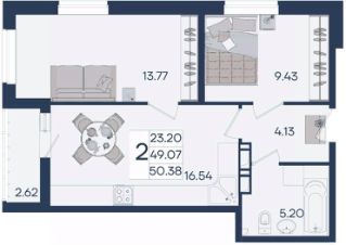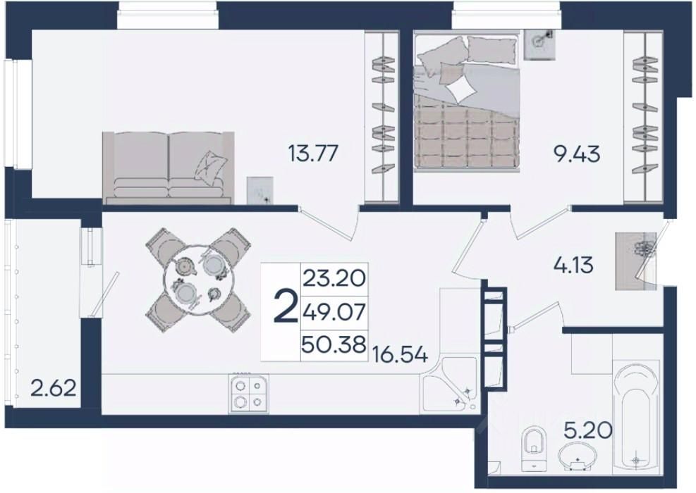 2 комнатная квартира с ремонтом 50.38 м², на 18 этаже в жилом комплексе "Дом 101".