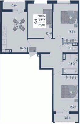 3 комнатная квартира с ремонтом 75.85 м², на 3 этаже в жилом комплексе "Дом 101".