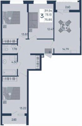 3 комнатная квартира с ремонтом 75.85 м², на 5 этаже в жилом комплексе "Дом 101".