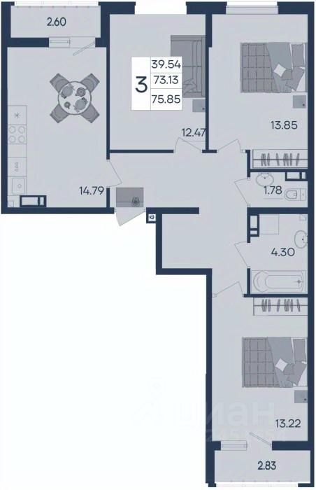 3 комнатная квартира с ремонтом 75.85 м², на 5 этаже в жилом комплексе "Дом 101".