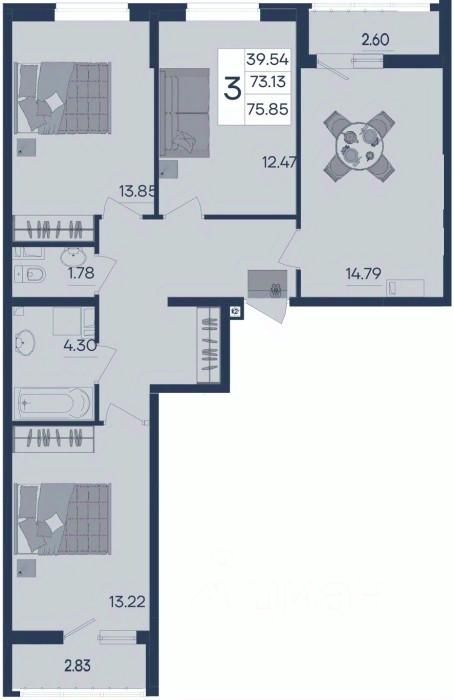 3 комнатная квартира с ремонтом 75.85 м², на 6 этаже в жилом комплексе "Дом 101".