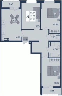 3 комнатная квартира с ремонтом 75.85 м², на 8 этаже в жилом комплексе "Дом 101".