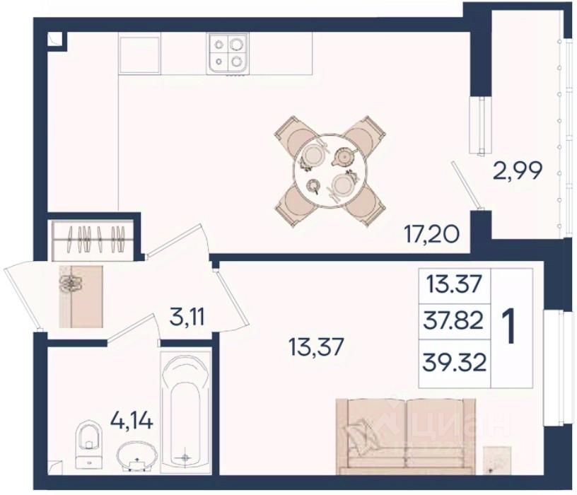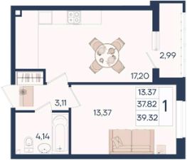 1 комнатная квартира с ремонтом 39.32 м², на 2 этаже в жилом комплексе "Дом 101".