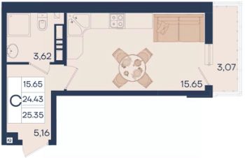 Студия 25.35 м², на 6 этаже в жилом комплексе "Дом 101".