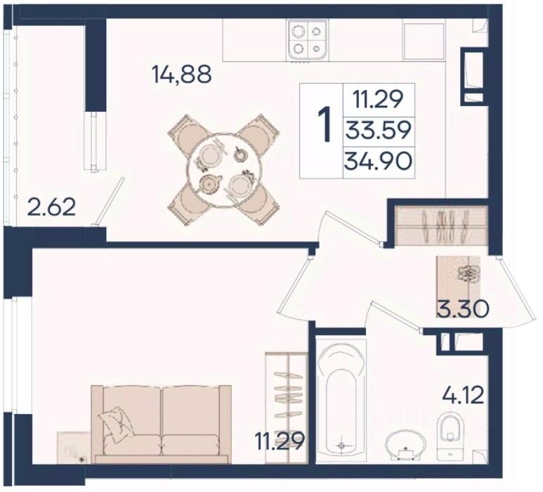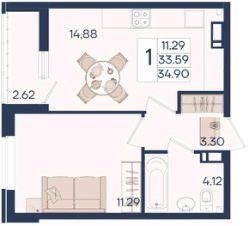 1 комнатная квартира с ремонтом 34.9 м², на 8 этаже в жилом комплексе "Дом 101".