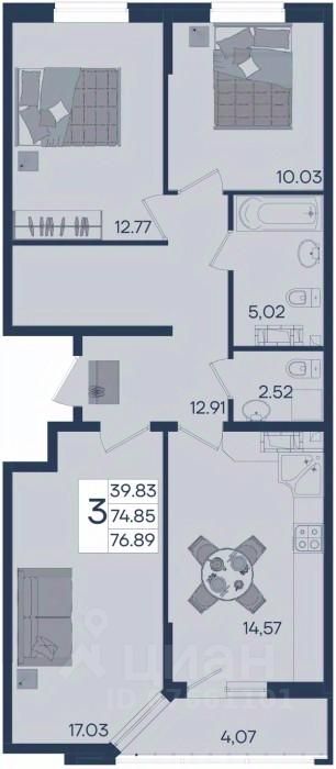 3 комнатная квартира с ремонтом 76.89 м², на 10 этаже в жилом комплексе "Дом 101".