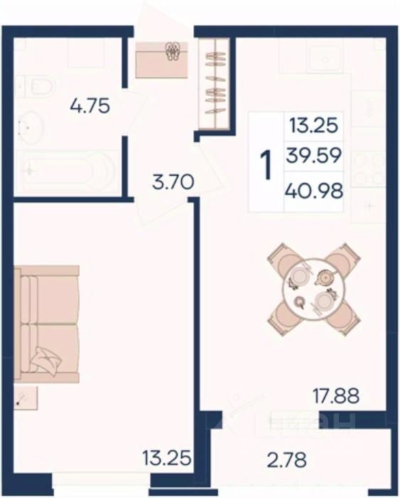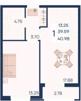 1 комнатная квартира с ремонтом 40.98 м², на 2 этаже в жилом комплексе "Дом 101".