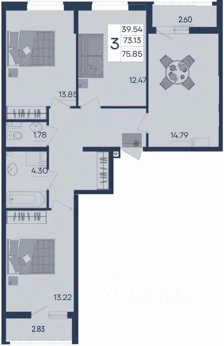3 комнатная квартира с ремонтом 75.85 м², на 4 этаже в жилом комплексе "Дом 101".