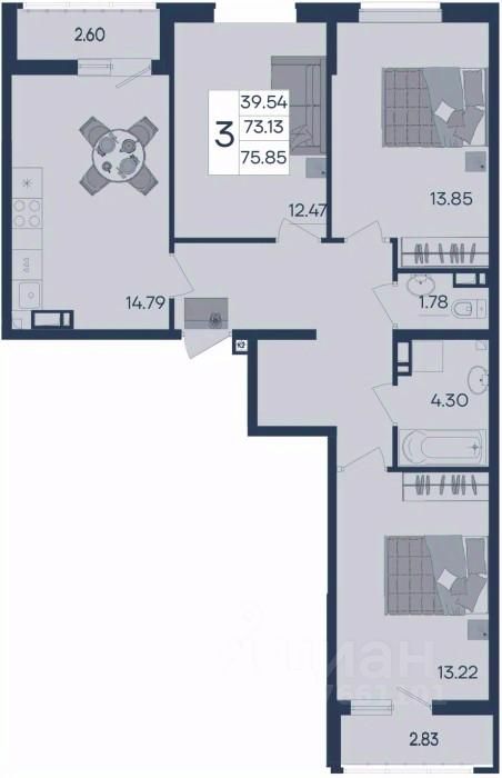 3 комнатная квартира с ремонтом 75.85 м², на 6 этаже в жилом комплексе "Дом 101".