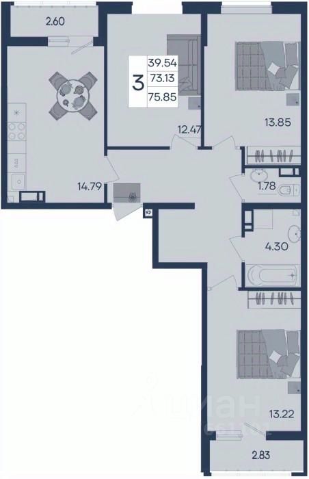 3 комнатная квартира с ремонтом 75.85 м², на 9 этаже в жилом комплексе "Дом 101".