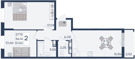 2 комнатная квартира с ремонтом 57.6 м², на 12 этаже в жилом комплексе "Дом 101".