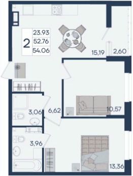 2 комнатная квартира с ремонтом 54.06 м², на 3 этаже в жилом комплексе "Дом 101".