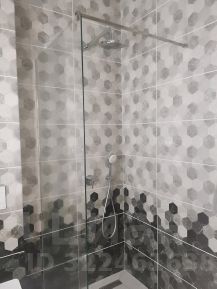 Совмещённый санузел с душевой кабиной, стены отделаны кафелем.