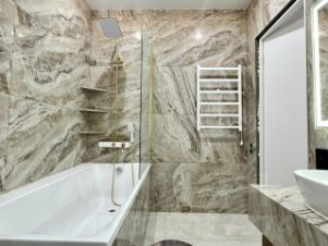 В квартире сделан качественный ремонт (остались небольшие детали, вскоре будут сделаны). Установлены светлые межкомнатные двери. В прихожей, кухне на полу керамогранит. Установлена кухня. Санузел совмещен, выложен керамогранитом, установлена премиальная сантехника, стиральная машина. Комнаты изолированы, в спальне установлена кровать, гардероб. Балкон застеклён. Ремонт сделан в 2024 году. В квартире остаётся всё.
