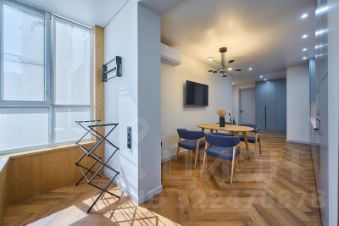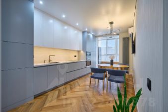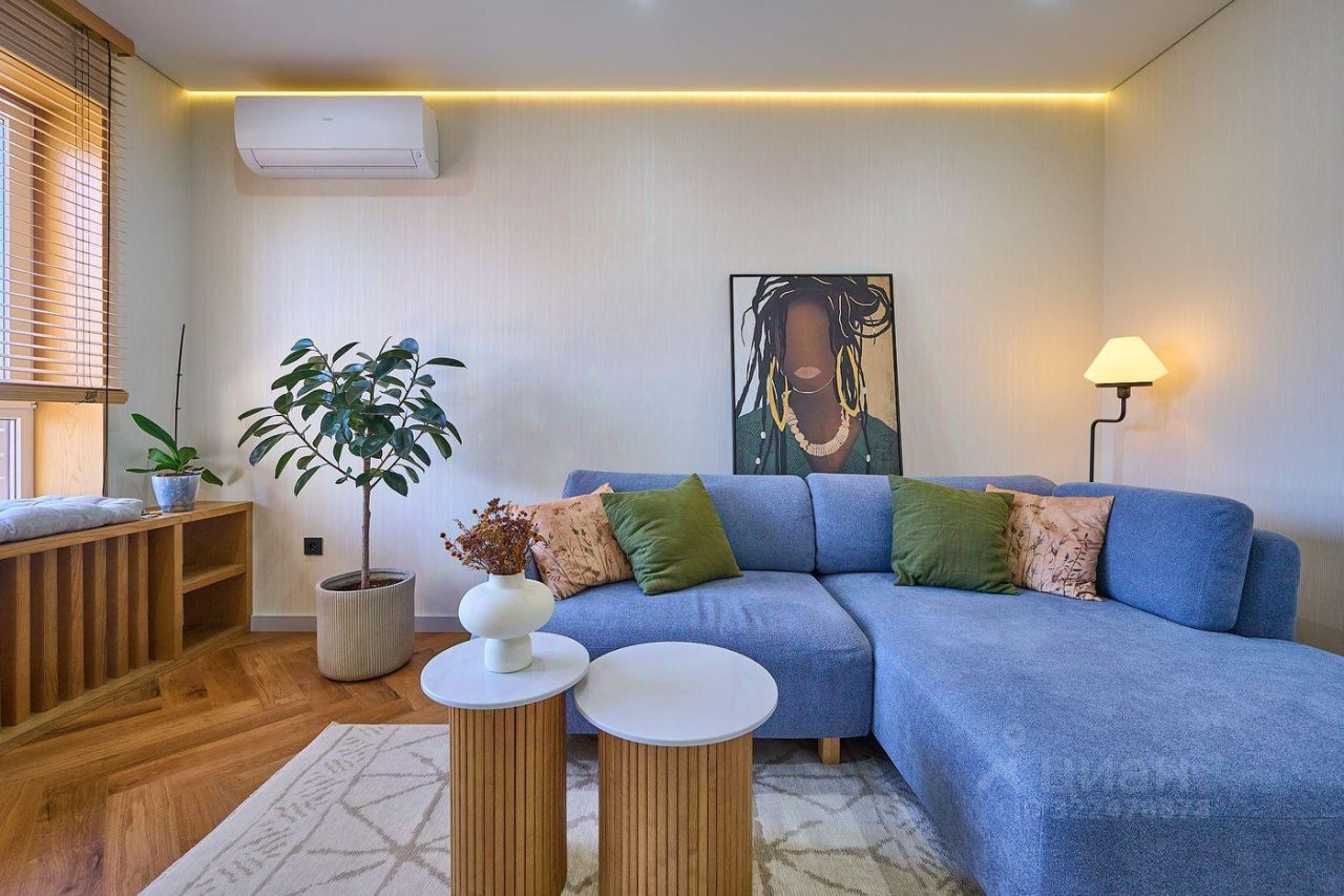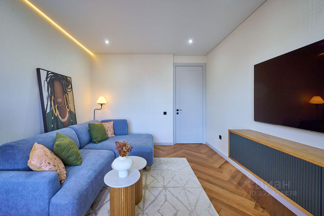 Интерьер квартиры оформлен в соответствии с дизайнерскими идеями. Межкомнатные двери имеют нестандартную форму, что делает пространство более просторным и уютным. Дизайн интерьера продуман с учетом всех потребностей жильцов.