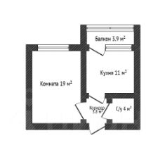 Общая площадь квартиры 35 м2 плюс балкон 3,9 м2