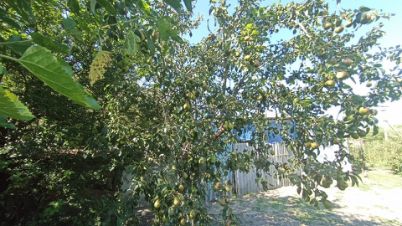 В собственности земельный участок-13 соток-ухожен. На территории участка 2 гаража, хоз двар, плодоносящий сад. Огород. В поселке школа, детский сад, храм, магазины, рынок, школа искусств,