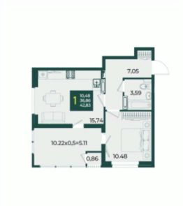 В продаже стильная 1 комнатная квартира с большой кухней 15.74м2