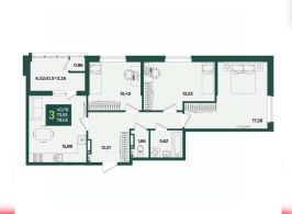 В продаже стильная 3 комнатная квартира с большой кухней 15,88м2 ,прихожая 12,01 м2 с зоной для гардероба.