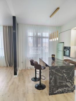 Предлагаю 1 комнатную квартиру. Современный ремонт. Никто не жил. Представленные фотографии соответствуют действительности. Кухня изготовлена на заказ, поверхность рабочей зоны и остров выполнены из натурального камня. Вместительная гардеробная. Полы на балконе и в ванной комнате с подогревом.