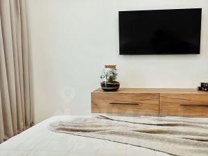 Она находится на 14-м этаже 18-этажного дома. Сделан современный ремонт из высококачественных и проверенных материалов. В квартире есть всё необходимое для комфортного проживания: уютная изолированная спальня, практичная кухня с выходом на балкон, а также место для хранения вещей в прихожей. Санузел с качественной сантехникой. В целом, состояние квартиры можно описать как заходи и живи!