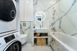 Вся мебель и техника подобраны в едином стиле и остаются новым хозяевам.
